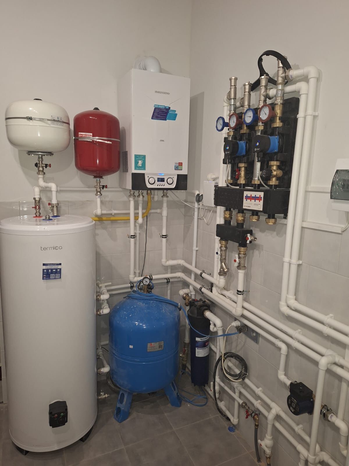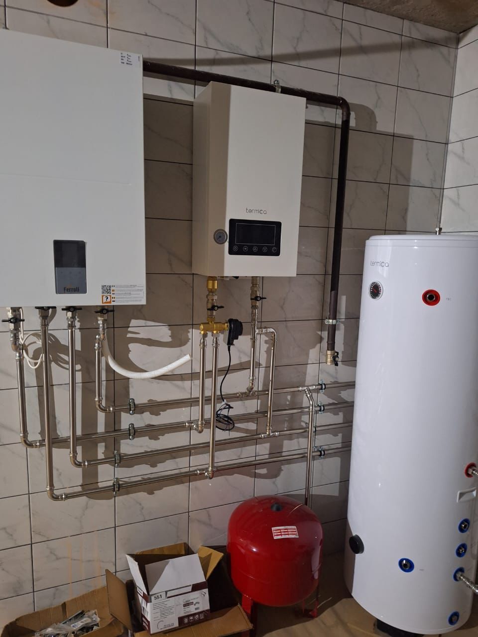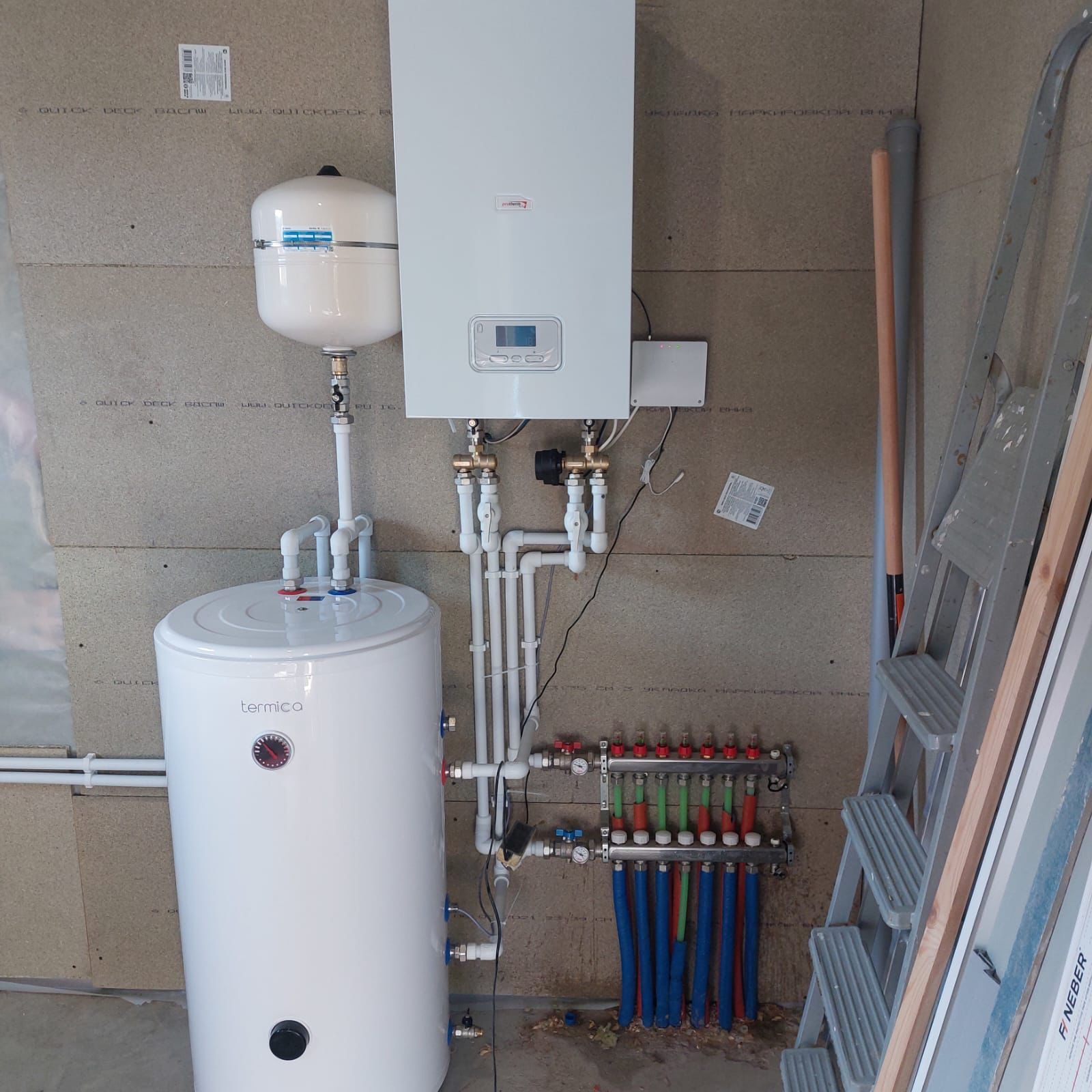 Тут очень много нюансов. Есть ли проект отопления и сантехники. Сколько точек водоразбора, есть ли тёплые полы, какой размер котельной и тд. Тут конечно надо вызывать нашего инженера по отоплению и с ним все проговаривать. После ответа на ряд вопросов инженер подберёт вам правильное оборудование, которое будет эффективно и долго работать.